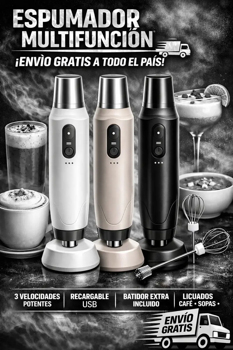 No es solo para café… Este espumador también bate huevos, mezcla licuados, prepara sopas, cócteles y mucho más. Todo con un diseño compacto, moderno y súper práctico.