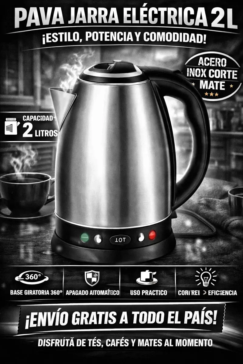 La Pava Jarra Eléctrica de 2 litros transforma tu rutina diaria en un momento cómodo, rápido y elegante.
