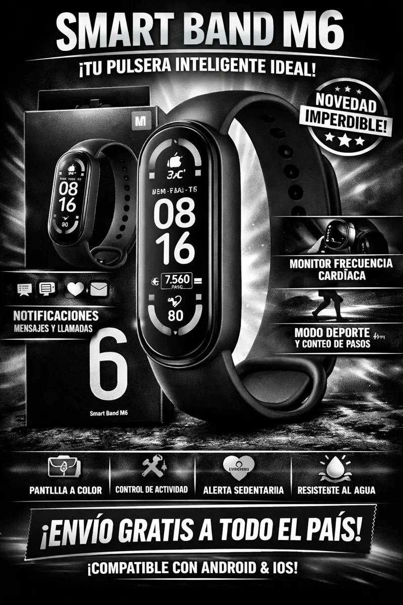 La Smart Band M6 es la pulsera inteligente perfecta para acompañarte en cada paso, ayudándote a mejorar tu bienestar de forma simple y accesible.